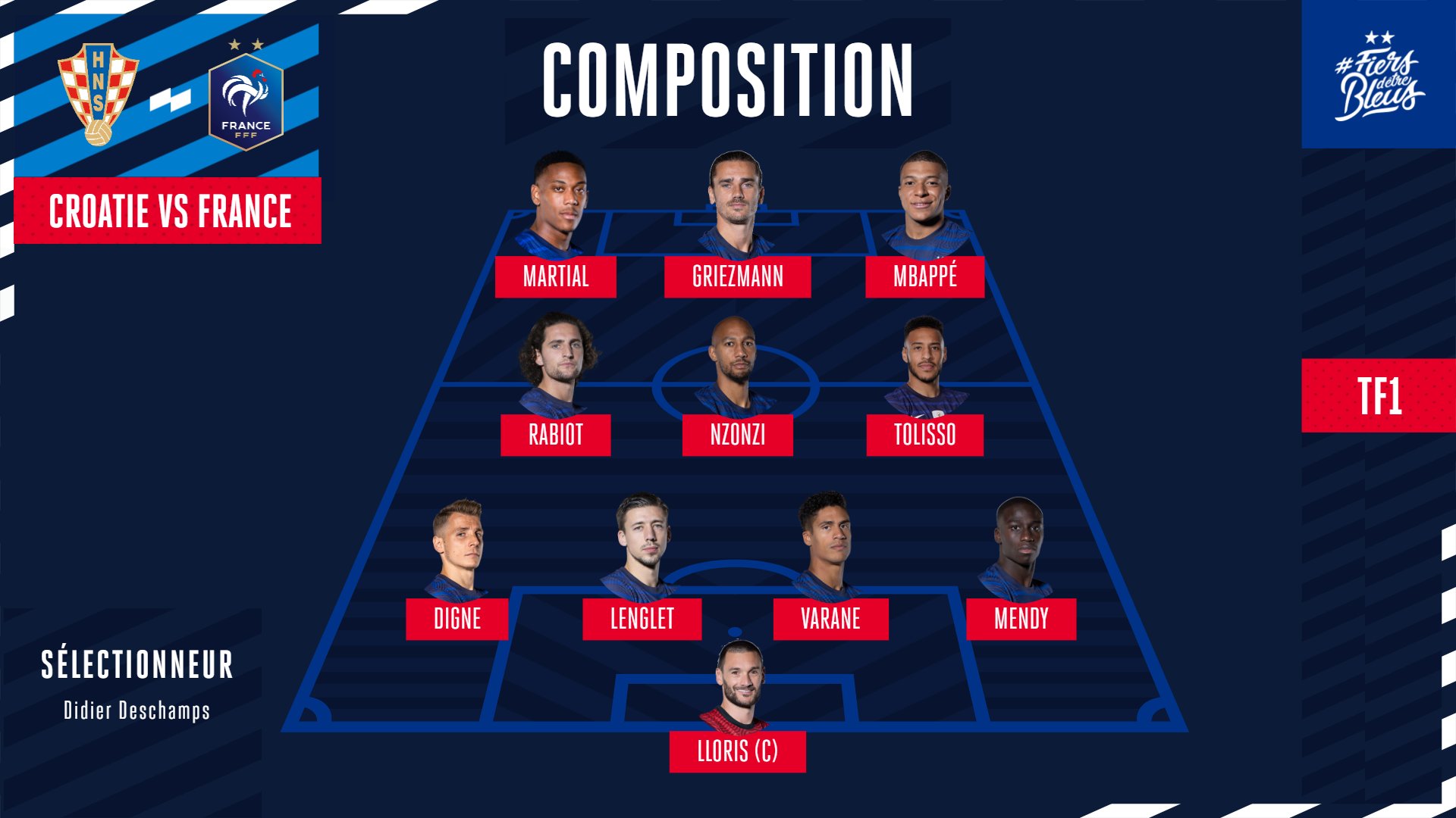 Sans bakker ni draxler la finale de la coupe de france va opposer monaco au psg, ce mercredi soir (21h15, à suivre en direct). Seul leader encore présent, luka modric qui avait pourtant annoncé ne plus jouer pour sa sélection nationale. There was more penalty shootout drama in the match between croatia and denmark at russia 2018. La composition de nos bleus pour affronter la croatie ! Retrouvez toutes les actualités, les matchs, résultats et les statistiques complètes.